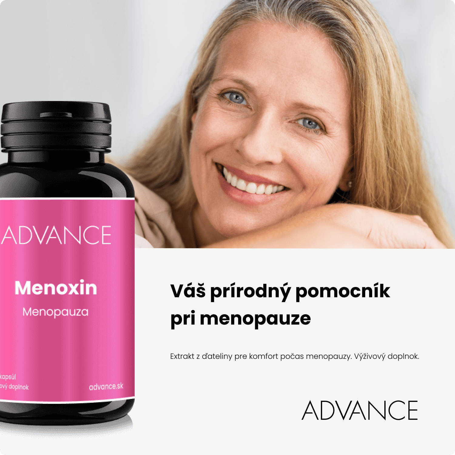 Výživový doplnok Menoxin je komplexný prírodný prípravok s obsahom vyváženej kombinácie rastlinných extraktov, ktoré prispievajú ku komfortu pri menopauze a jej fyziologických prejavoch (napr. návaly, potenie…).