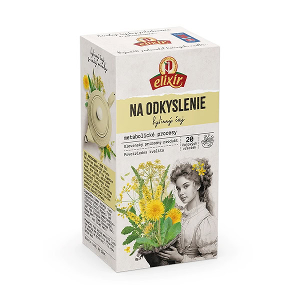 Bylinný čaj v nálevových vreckách na odkyslenie organizmu a na metabolické procesy.