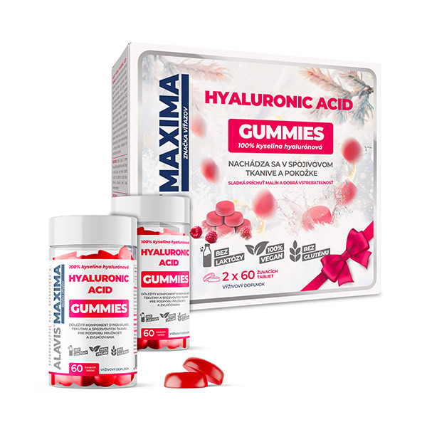 ALAVIS™ Maxima Hyaluronic Acid Gummies predstavuje praktický a pohodlný spôsob dopĺňania kyseliny hyalurónovej (hyaluronátu sodného), ktorá je prirodzenou a neoddeliteľnou súčasťou ľudského tela. Táto látka má významnú úlohu v udržiavaní hydratácie a podporovaní optimálneho prostredia v rôznych tkanivách. Vyniká schopnosťou viazať vodu a tvoriť komplexy s elektrolytmi a živinami, čo prispieva k správnej funkcii spojivových tkanív a slizníc v každodennom živote.