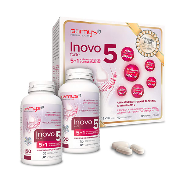 Predstavujeme vám doplnok Barny’s® Inovo 5 forte od svetoznámej značky Barny’s. Ide o najlepšie hodnotený preparát (víťaz testu) v nezávislom teste kĺbovej výživy dTest 5/2016, kde bolo porovnávaných až 19 najpredávanejších produktov pre zdravé kĺby. To svedčí o výnimočnej kvalite a účinnosti, ktorú dokazuje aj množstvo spokojných a lojálnych zákazníkov, vrátane profesionálnych športovcov, aktívnych jedincov a seniorov.