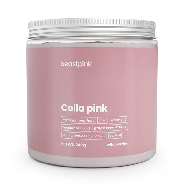 Colla Pink je beauty nápoj bez cukru, ktorý si vďaka lahodnej chuti a komplexnému zloženiu zamiluje každá žena. Funkčnosť tejto formulácie je založená na hlavnej zložke, teda hydrolyzovaných kolagénových peptidoch. Tie vznikajú špeciálnym procesom hydrolýzy, pri ktorom dochádza k rozkladu kolagénu na menšie molekuly vo forme peptidov. Výsledkom je biologicky dostupný kolagén, ktorý je prirodzenou súčasťou organizmu. Je totiž štrukturálnym proteínom v pokožke, vlasoch, nechtoch alebo chrupavke. V žiadnom beauty produkte by nemala chýbať ani kyselina hyalurónová, ktorá je tiež telu vlastnou látkou. Nachádza sa napríklad v pokožke, kĺboch alebo očiach.
