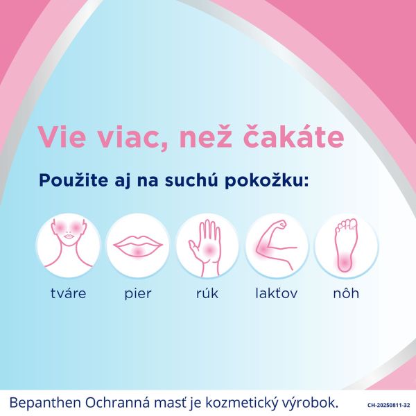 Bepanthen Ochranná masť je kozmetický výrobok určený len na vonkajšie použitie. vyvarujte sa kontaktu s očami. Pred dojčením odstráňte zvyšky masti. Uchovávajte pri teplote do 25 °C. Pred upotrebením si prečítajte informácie na obale produktu a pri jeho skladovaní aj aplikácii sa vždy riaďte odporúčaniami výrobcu.