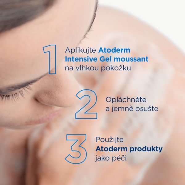 Vďaka účinným čistiacim zložkám a vitamínu PP pôsobí Atoderm Intensive gel moussant proti množeniu škodlivých mikroorganizmov a prenikaniu dráždivých látok, ktoré zhoršujú stav suchej pokožky. Atoderm Intensive Gel moussant zároveň zmierňuje nepohodlie a podráždenie, pričom podporuje prirodzené posilnenie kožnej bariéry.