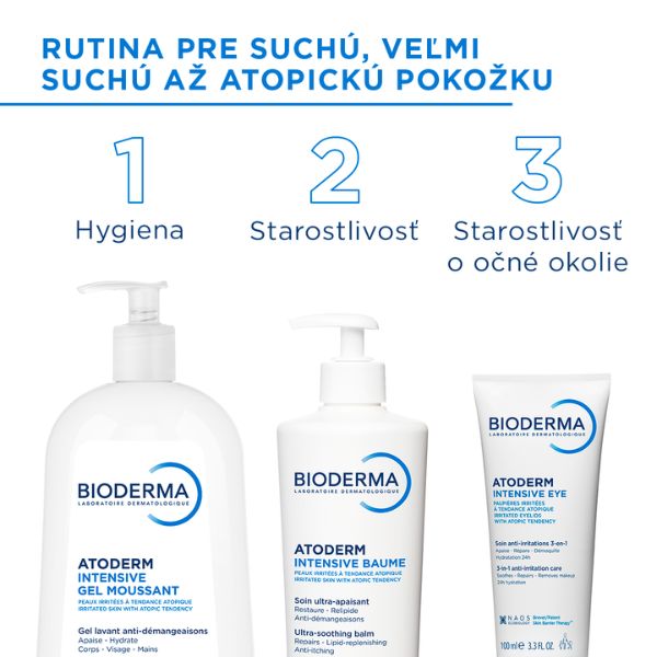 Atopická pokožka často zažíva nepríjemné pocity, ako sú svrbenie či pálenie. Preto je nutné vybrať vhodnú starostlivosť, ktorá tieto prejavy zmierni, zabráni jej vysúšaniu a zároveň minimalizuje riziko infekcie. Bioderma Atoderm Intensive gél moussant tieto potreby dokonale spĺňa. Je vhodný dokonca aj pre dojčatá.