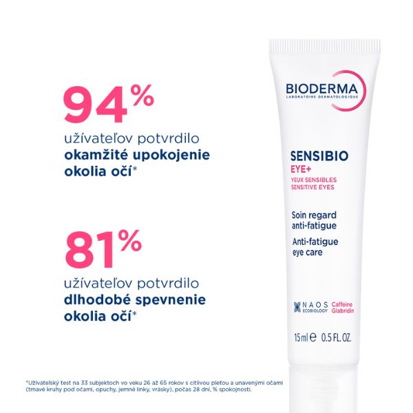 Sensibio Eye+Očný gél-krém na známky únavy očného okolia vhodný aj pre citlivé oči. Zameriava sa na tmavé kruhy, opuchy a jemné vrásky pre viditeľne oddýchnutý vzhľad.