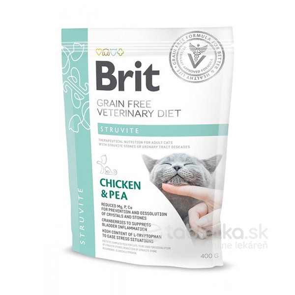 Choroby močových ciest môžu byť pre vašu mačičku veľmi bolestivou záležitosťou. Hlavne ak sa objavia struvitové kamene. Veľkú úlohu v ich tvorbe zohrávajú infekcie močových ciest, genetika a nesprávna strava. Aj preto ako jedno z východísk odporúčajú veterinárni lekári kompletné suché krmivo pre mačky Brit Veterinary Diets GF cat Struvite.
