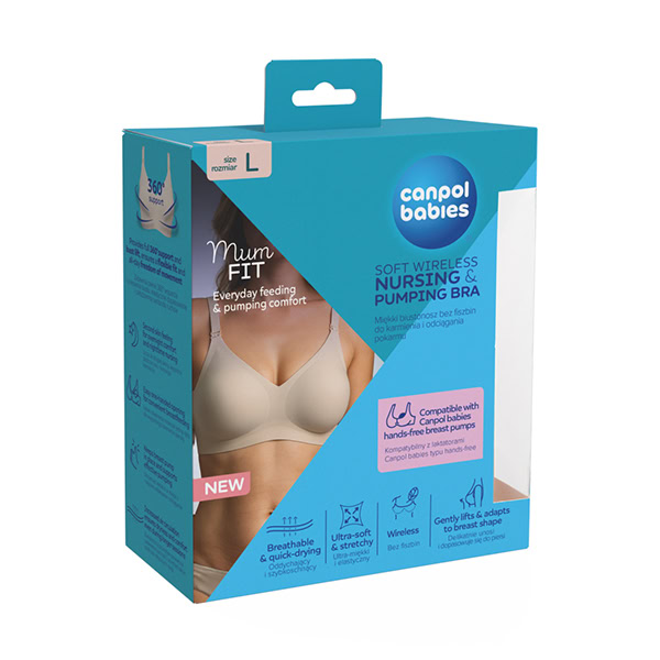 Podprsenka Canpol Babies MumFIT je navrhnutá tak, aby uľahčila pohodlné dojčenie a hands-free odsávanie materského mlieka. Zároveň poskytuje spoľahlivú oporu prsníkom a umožňuje jednoduchú manipuláciu jednou rukou. Je vyrobená z mäkkého, priedušného materiálu a s praktickým strihom, vďaka čomu je ideálna aj na každodenné nosenie počas tehotenstva a dojčiaceho obdobia.