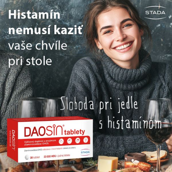 Histamínová intolerancia (HIT) je stav, pri ktorom telo nedokáže správne odbúravať histamín, čo vedie k príznakom ako je plynatosť a tráviace problémy, bolesti hlavy, kožné reakcie alebo nádcha. HIT je spôsobená nedostatkom enzýmu ktorý odbúrava histamín v tráviacom trakte. So schopnosťou odbúravať histamín vám však môže pomôcť výživový doplnok Daosin®. Obsiahnutý enzým DAO prispieva k rozkladu histamínu zo stravy, čím tablety Daosin® napomáhajú predchádzať nežiaducim reakciám spojeným s jeho nadmernou hladinou v tele.
