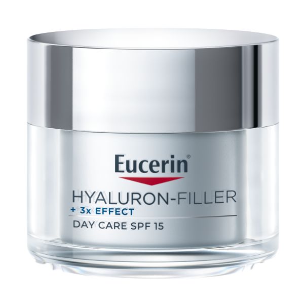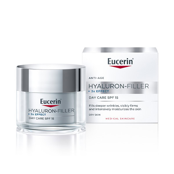 Eucerin Hyaluron-Filler Denný krém SPF 15 je vhodný pre suchú pleť. Pomáha jej bojovať s prvými príznakmi starnutia – vďaka svojmu zloženiu účinne vyhladzuje nielen jemné, ale aj hlboké vrásky. Navyše poskytuje pokožke ochranu pred predčasným starnutím spôsobeným slnečným žiarením.