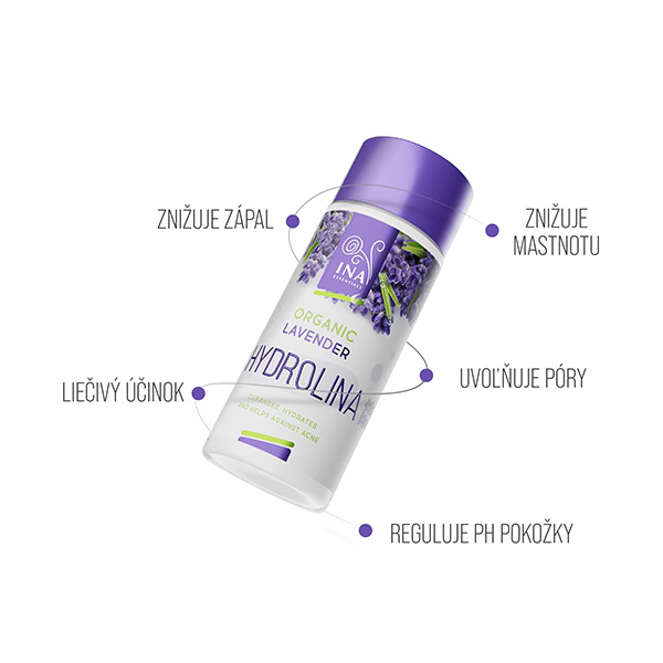 INA Essentials HYDROLINA ORGANIC – levanduľová voda na akné je prirodzené riešenie pre problematickú pleť so sklonom k akné a čiernym bodkám. Jemne, no efektívne čistí a prináša pleti dlhodobú rovnováhu, sviežosť a zdravý vzhľad.