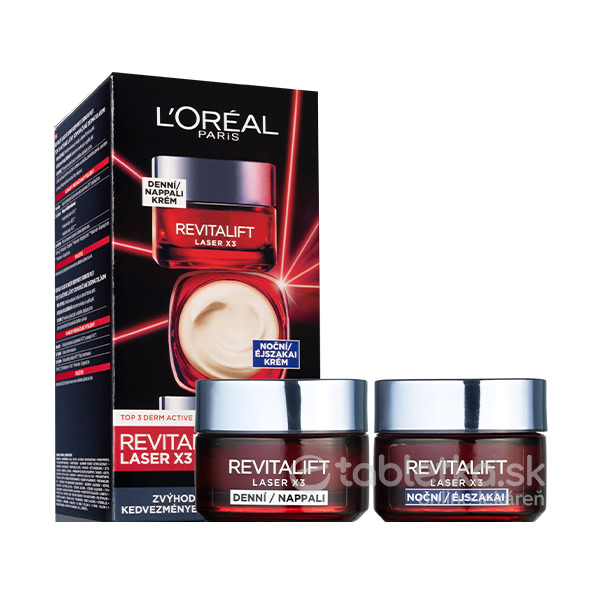 L’Oréal Paris Revitalift Laser denný a nočný krém denný a nočný krém (predtým známe ako X3) na redukciu vrások, remodeláciu kontúr a obnovu štruktúry pleti.
