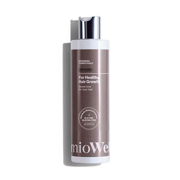 mioWell RENEWING kondicionér pre ženy je špeciálne vyvinutý na obnovu a podporu vlasov so sklonom k rednutiu, určený najmä pre jemné a oslabené vlasy. Jeho hlavným cieľom je nielen dodať vlasom výživu a hladkosť, ale aj zvýšiť ich odolnosť, pevnosť a podporiť prirodzený rast. Vďaka obsahu ženšenu a rozmarínu pôsobí priamo na pokožku hlavy a vlasové folikuly, kde stimuluje prietok krvi, povzbudzuje aktivitu folikulov a vytvára optimálne podmienky pre hustejšie, plnšie a zdravšie vlasy. Kondicionér zároveň chráni vlasy pred lámavosťou, vysušením či negatívnymi vonkajšími faktormi.