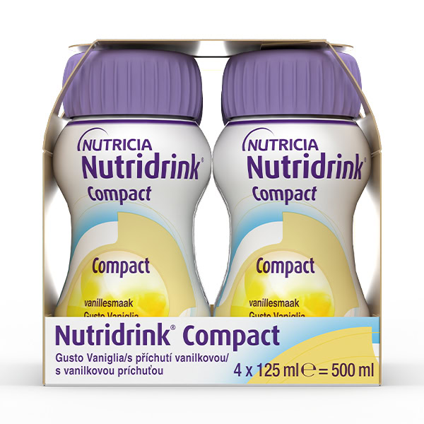 Nutridrink Compact s vanilkovou príchuťou (inovácia 25) predstavuje koncentrovanú tekutú výživu určenú pre dospelých pacientov s potrebou zvýšeného príjmu energie a bielkovín alebo s obmedzeným stravovaním v dôsledku ochorenia. V praktickom balení s objemom 125 ml ponúka nutrične kompletné zloženie, ktoré môže – na základe odporúčania zdravotníckeho pracovníka – slúžiť ako doplnok k bežným jedlám alebo ako plnohodnotná náhrada jedla. Vďaka vyššej energetickej a bielkovinovej hustote je tento produkt ideálny pre pacientov, ktorí nezvládajú konzumáciu väčších porcií jedla, trpia nechutenstvom, majú problémy s prehĺtaním či hryzením, alebo potrebujú rýchlo doplniť dôležité živiny počas rekonvalescencie.