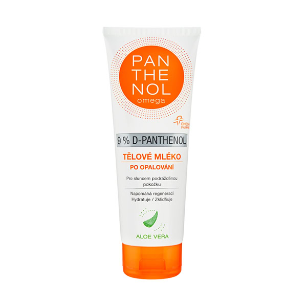 Starostlivosť po opaľovaní a počas celého roka. Účinné látky: Panthenol 9%, Aloe Vera, alantoín, vitamínový komplex.
