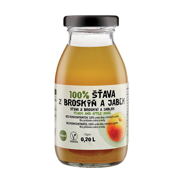 100% ovocná šťava, bez konzervantov, bez pridaného cukru a vody. Obsahuje prírodné cukry. Pasterizovaná.