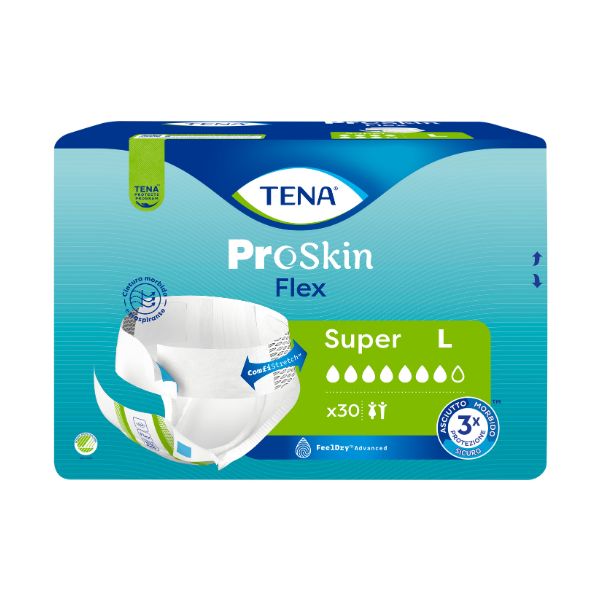 Plienkové nohavičky z radu TENA ProSkin Flex sú flexibilné inkontinenčné nohavičky s nastavovacím pásom ComfiStretch dizajnovaným tak, aby umožňoval ergonomickejšiu výmenu produktov.
